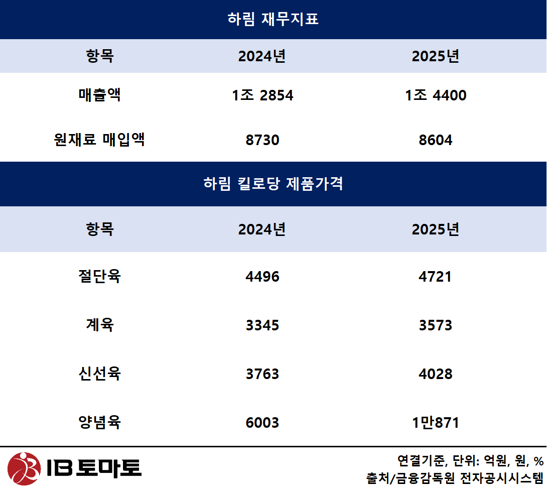 이를 종합하면, 판매량 확대보다는 제품 가격 상승이 매출 증가를 견인했을 가능성이 크다는 분석이 나온다. 매출액은 판매량에 제품 단가를 곱한 값이다. 제품 단가를 올리거나 판매량을 늘리면 매출액이 증가하는 셈이다. 하림의 경우에는 원재료 사용량이 감소했는데 제품 가격 인상을 고려하면 단가 상승 효과가 매출 증가를 주도했을 가능성이 크다.